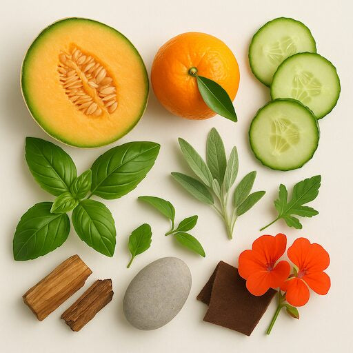 Notas de Salida: Una apertura refrescante y revitalizante con melón, mandarina y un toque crujiente de pepino, creando una sensación de frescura instantánea.