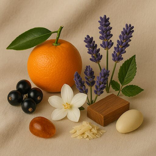Notas de Salida: Una apertura luminosa y vibrante con la frescura de la mandarina, la intensidad de la lavanda, el toque afrutado de las grosellas negras y la sutileza verde del petit grain.