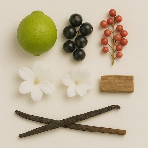 Notas de Salida: Un inicio vibrante y sofisticado con la frescura de la bergamota, el dulzor profundo de las grosellas negras y un toque especiado de pimienta rosa, que aportan carácter y modernidad.