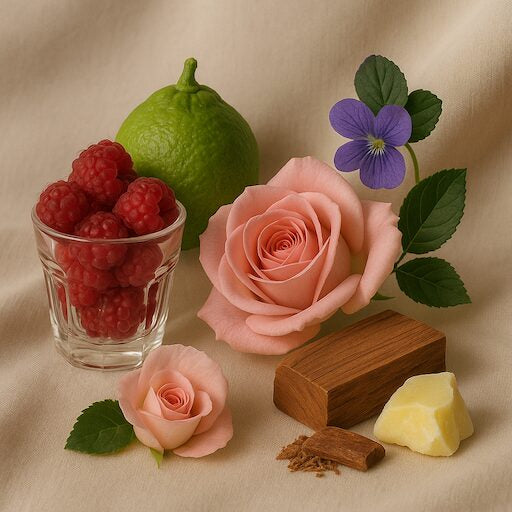 Notas de Salida: Un inicio vibrante y embriagador con el dulzor del licor de frambuesa y la frescura luminosa de la bergamota de Calabria, creando una apertura jugosa y chispeante.